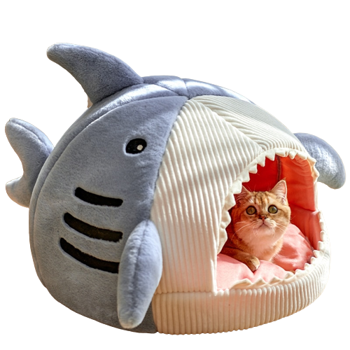 A Cama e Toquinha para gatos em formato de Tubarão é ideal para o seu gatinho se manter quentinho neste inverno. Ela é super aconchegante e confortável, seu material é 100% algodão.