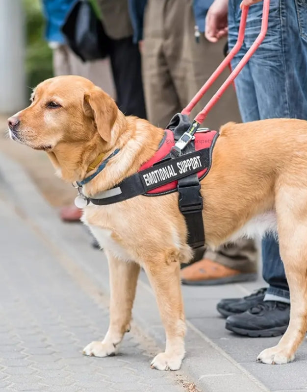 Os cães de Suporte Emocional podem acompanhar seus tutores em cabines de voos, viajar em transporte público e ainda entrar em locais que são restritos para outros animais de estimação. Portanto, é indicado que cães de Suporte Emocional estejam devidamente identificados em Coleiras Peitorais.