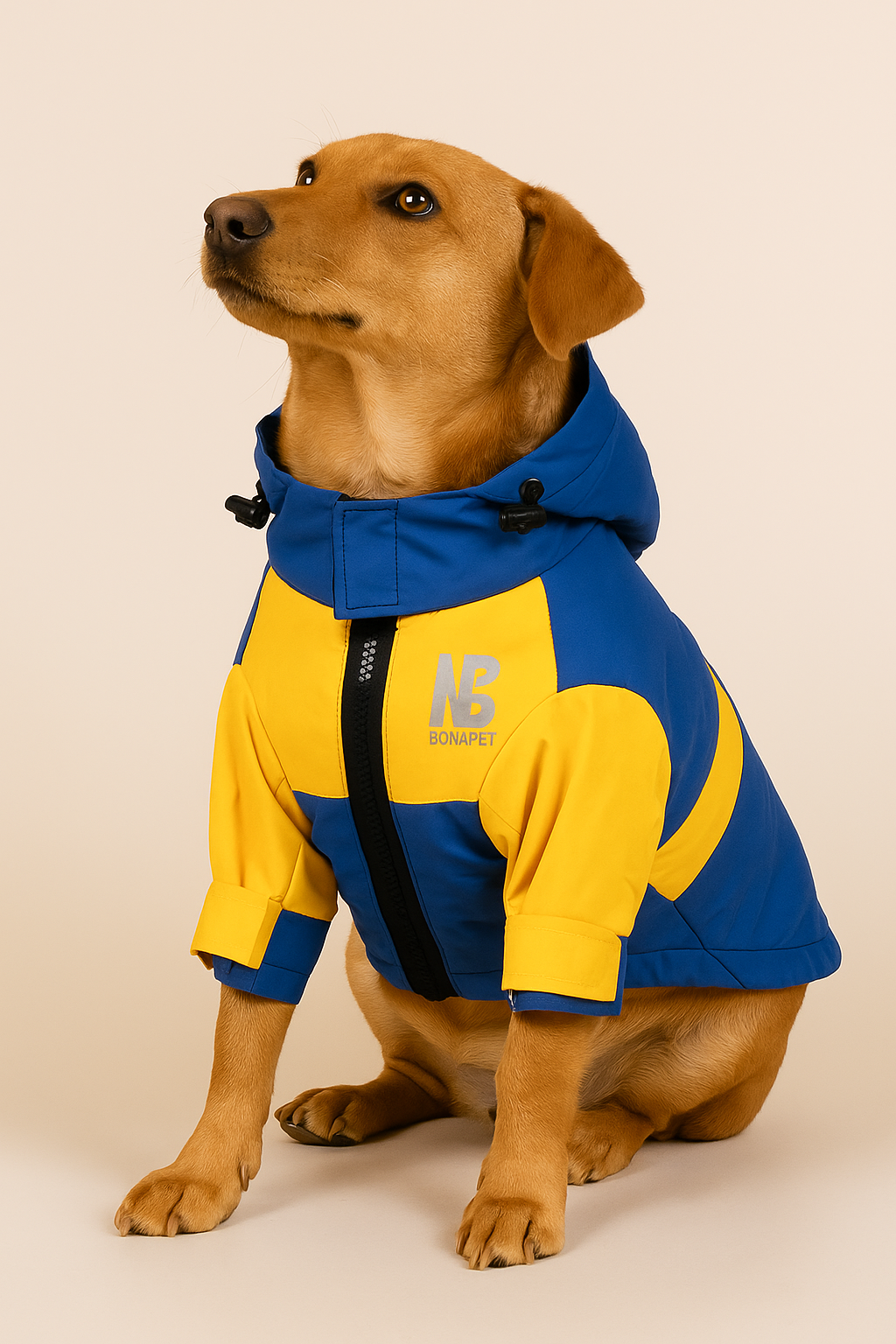 Mantenha seu pet protegido, quentinho e estiloso nos dias frios e chuvosos com a Jaqueta Impermeável Bonapet! 🐶