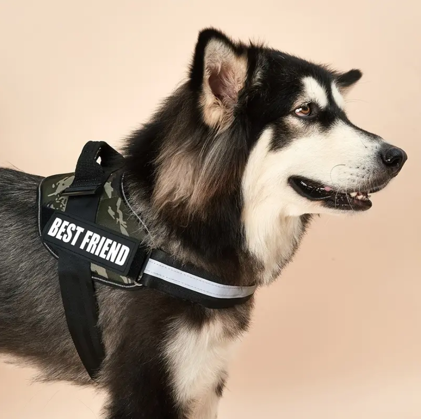 Transforme os passeios com o seu pet com o Peitoral Camuflado para Cachorro, feito em nylon resistente, com ajuste confortável, faixa refletiva e ainda personalizado com o nome do seu melhor amigo. Ideal para cães de todos os portes, esse peitoral garante segurança, estilo e muito mais praticidade para o seu dia a dia.