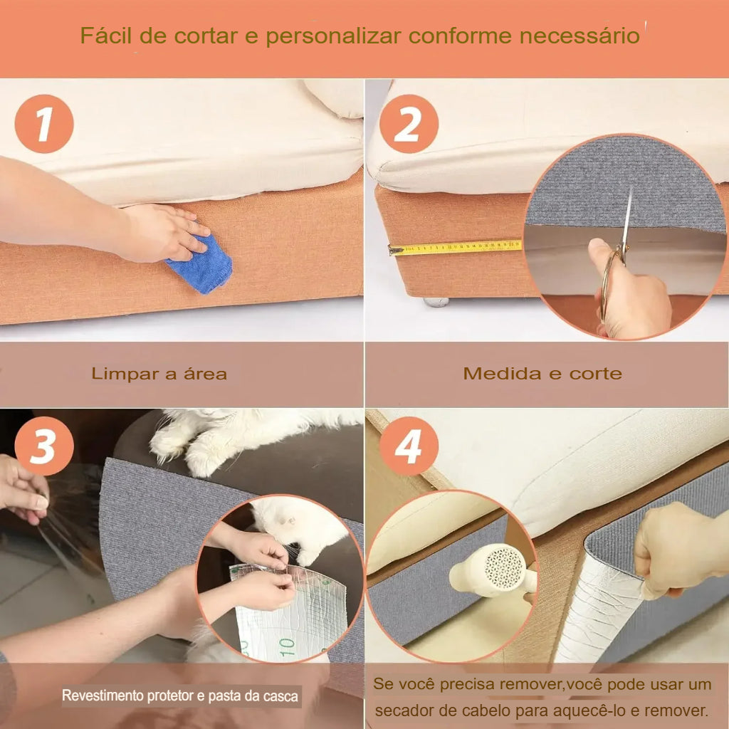 O Tapete Arranhador para Gatos é ideal para proteger seus móveis dos arranhões dos gatos, preservando sofás, cadeiras e outros móveis. Com design autoadesivo e feito em material durável, ele oferece uma solução prática e eficiente para proteger seu lar dos riscos causados pelas garras do seu pet.