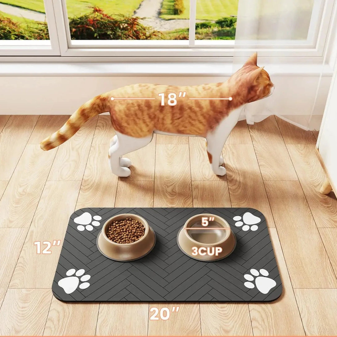 Absorção Potente e Resistente a Manchas: Nosso tapete para alimentação de cães e gatos é altamente absorvente, rapidamente absorvendo água e outros líquidos, evitando pegadas molhadas e mantendo o ambiente de alimentação do seu pet sempre limpo.